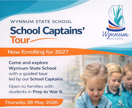 Come and explore Wynnum State School with a guided tour led by our School Captains. Open to families with students in Prep to Year 6.